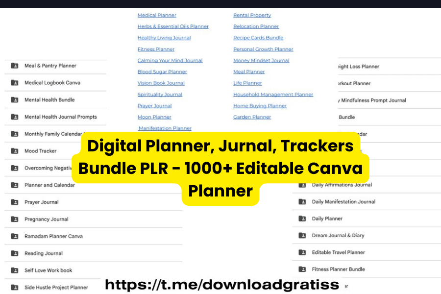 Siapapun yang ingin download Digital Planner, Jurnal, Trackers Bundle PLR - 1000+ Editable Canva Planner