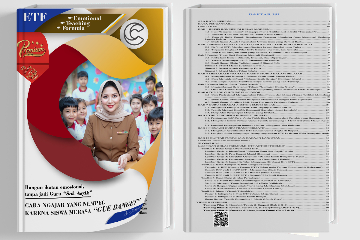 ETF ACTION TOOLKIT (Lampiran): Workbook PDF, Templat RPP "Plug-and-Play", Bank Skrip anti-canggung, dan Kartu Bantu Cetak yang bisa Anda bawa ke kelas besok.